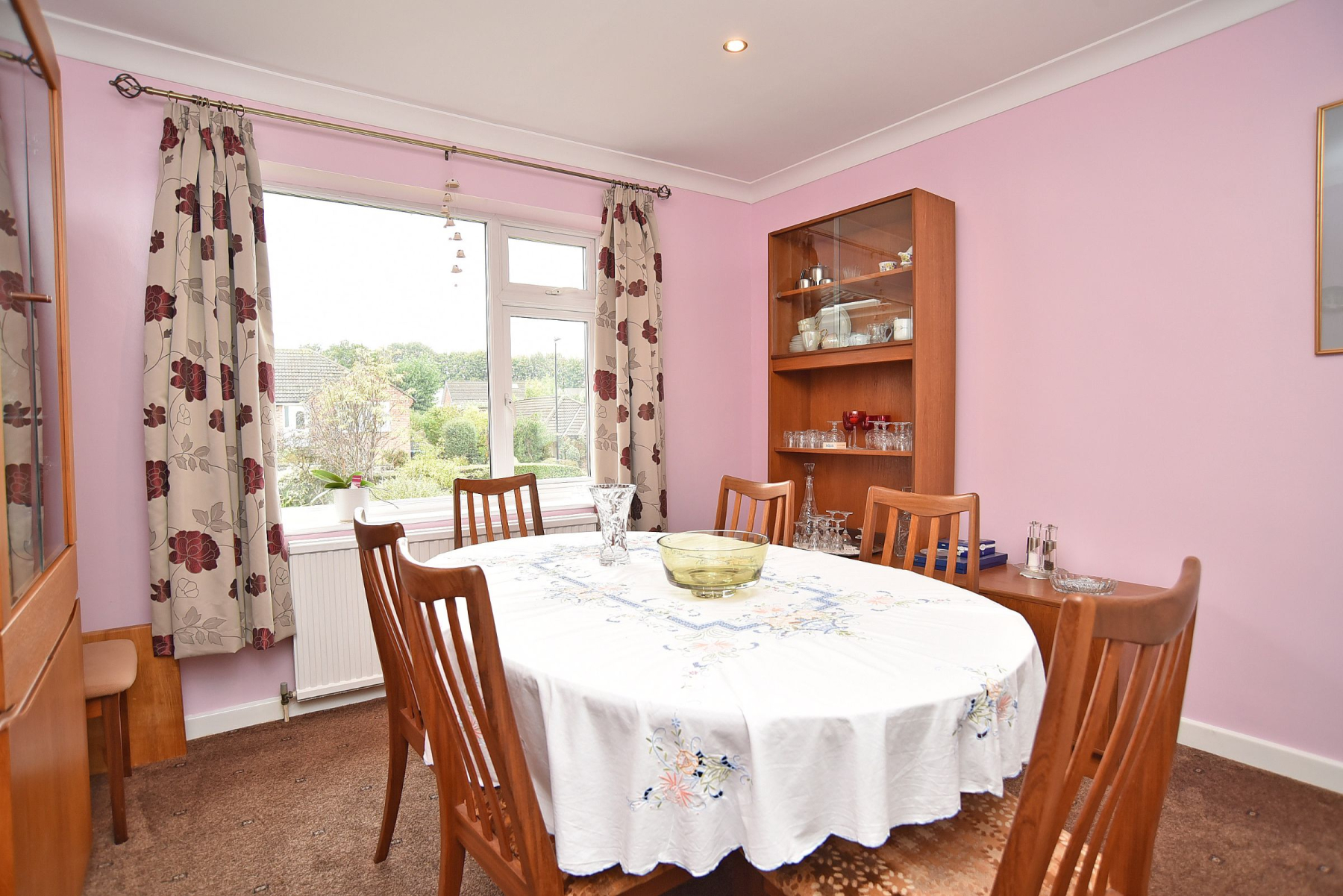 The spacious lounge enjoys a calming outlook across the front garden and features a focal gas fire. A separate dining room currently provides an ideal setting for hosting, however this room is utilised as a bedroom by the majority of bungalows on the street, while the kitchen with breakfast area offers both practicality and flexibility, complete with fitted units and integrated appliances. Two further double bedrooms and a well-appointed house bathroom complete the internal layout.