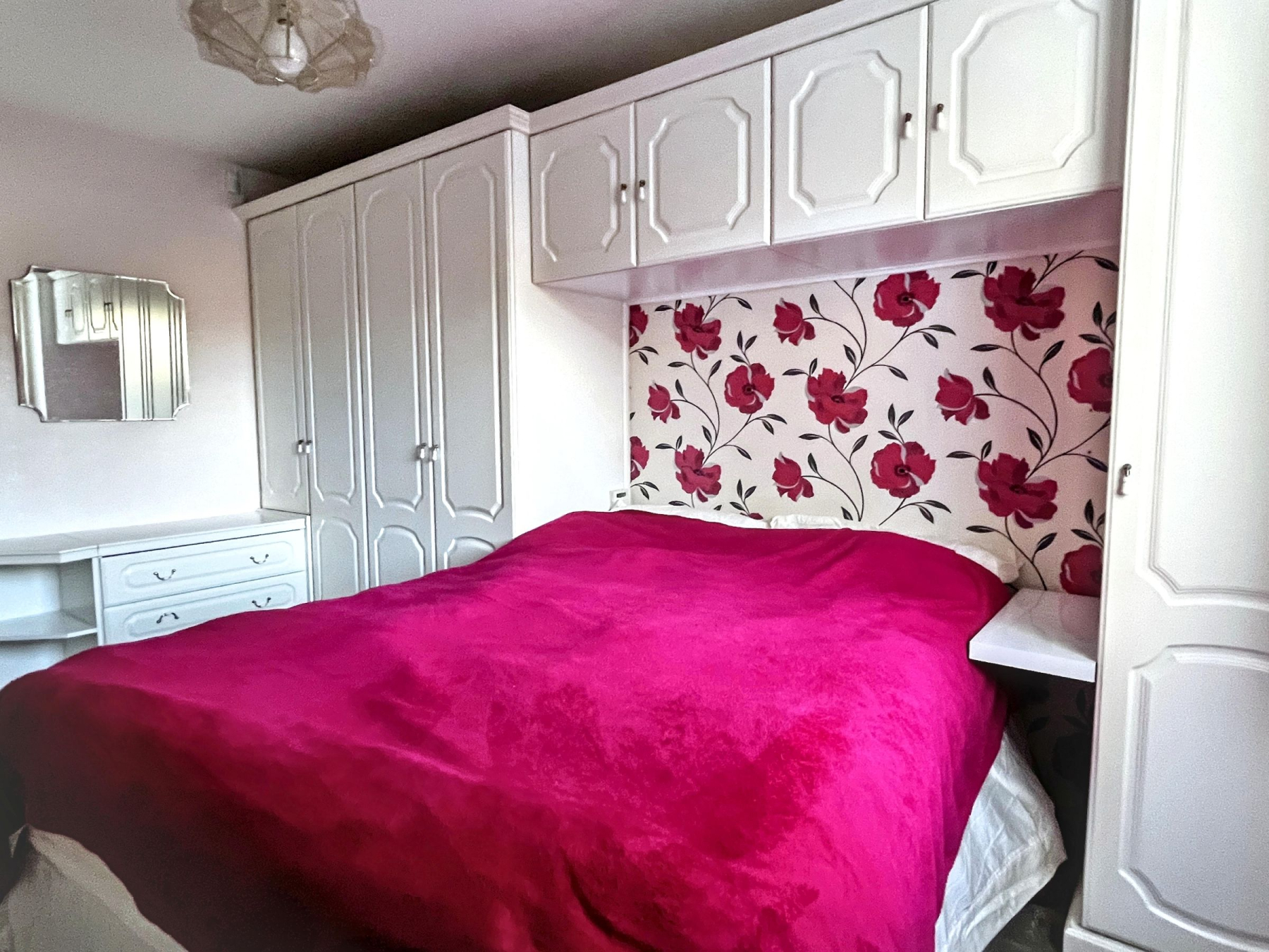 There are two bedrooms. The principal bedroom benefits from a range of built-in wardrobes offering excellent storage. The second bedroom is a versatile space, suitable for use as a guest bedroom, dining room, or home office, and features a glazed door that opens directly onto the rear garden.