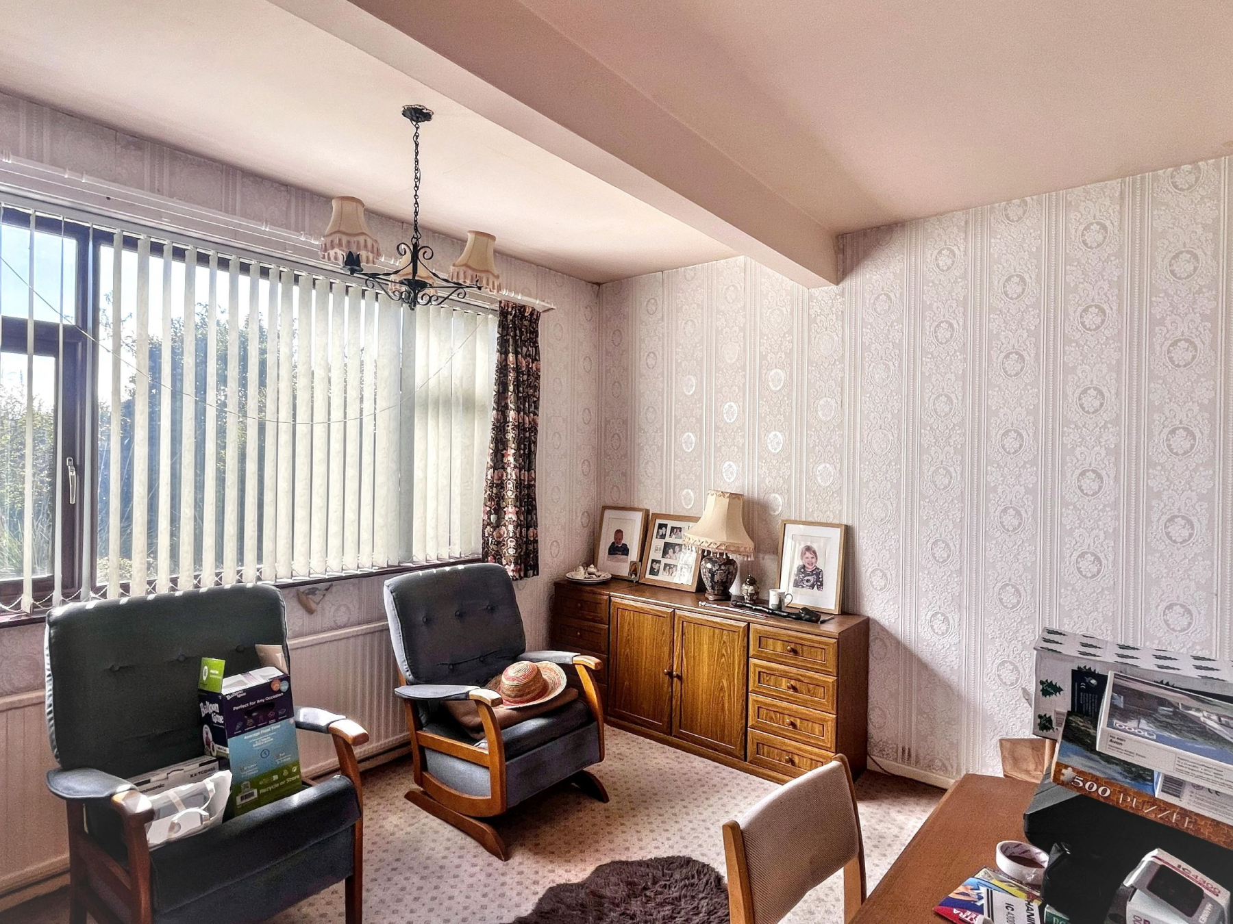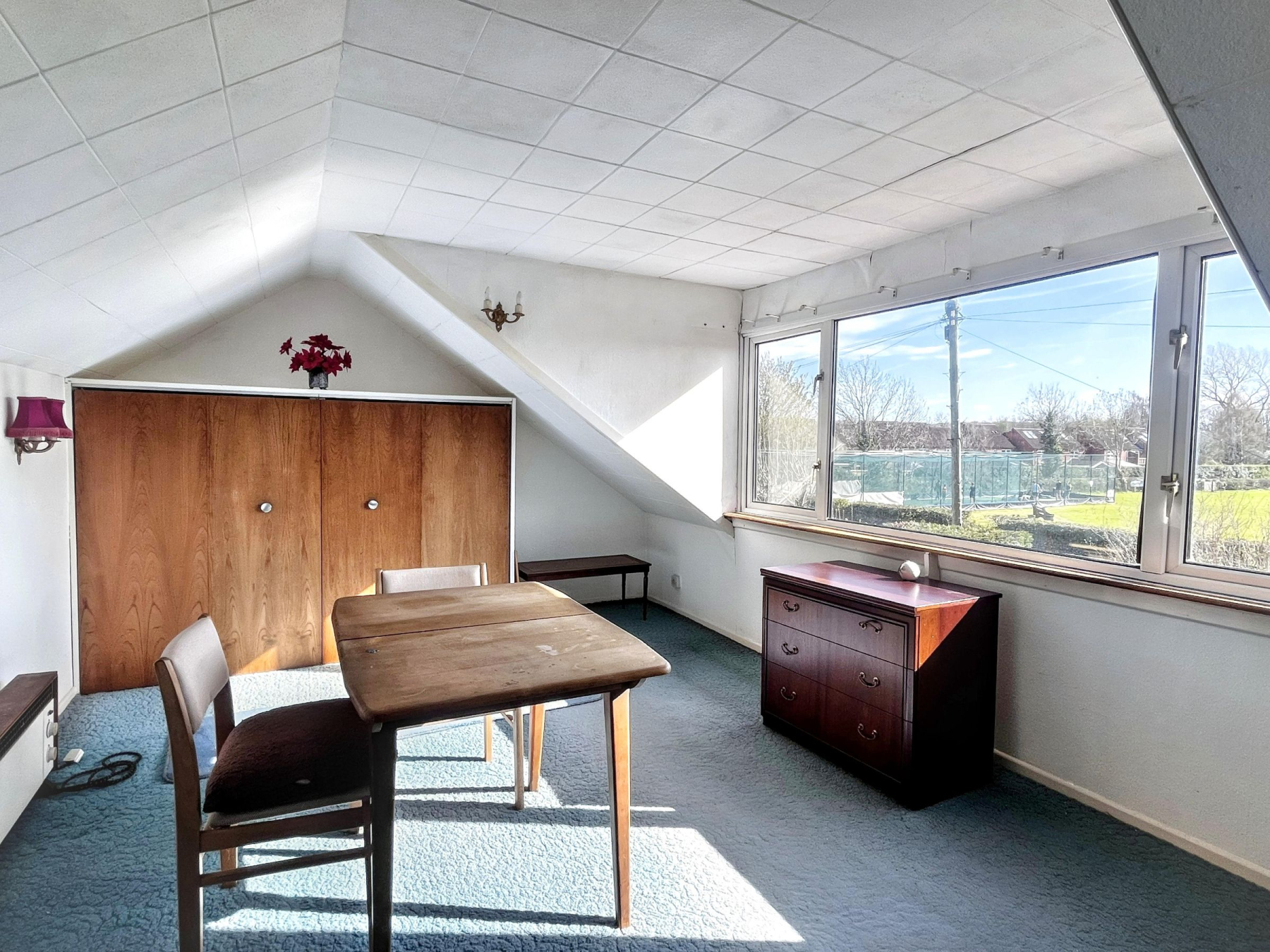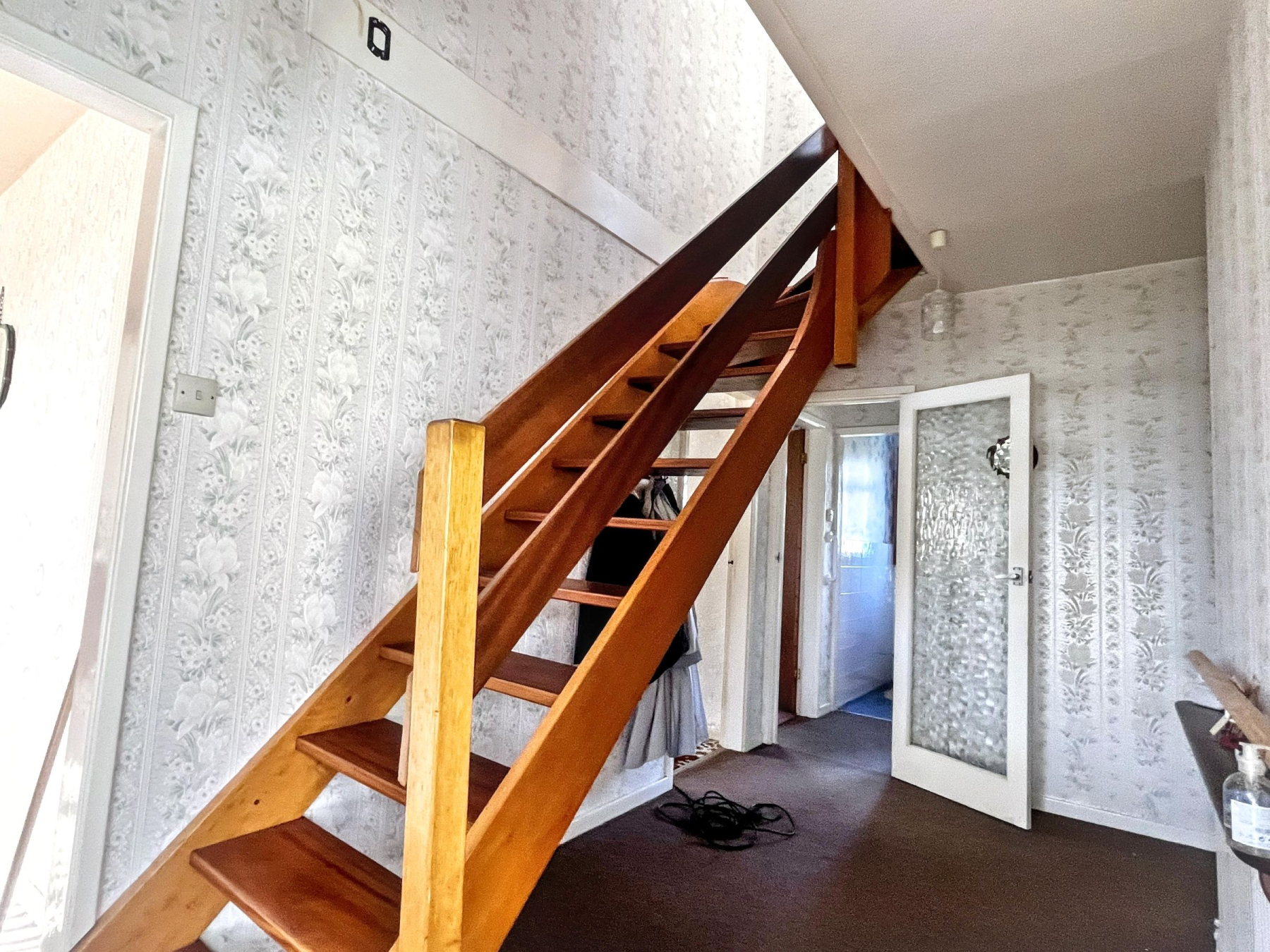 At ground floor level, the property comprises a central reception hall, lounge with gas fire, kitchen with adjoining utility, and three bedrooms alongside the main bathroom. This configuration presents immediate scope for redesign-most notably the potential to create an open-plan kitchen/living/dining hub, which would materially enhance both functionality and market appeal. The integral garage also offers conversion potential, subject to the necessary approvals.
