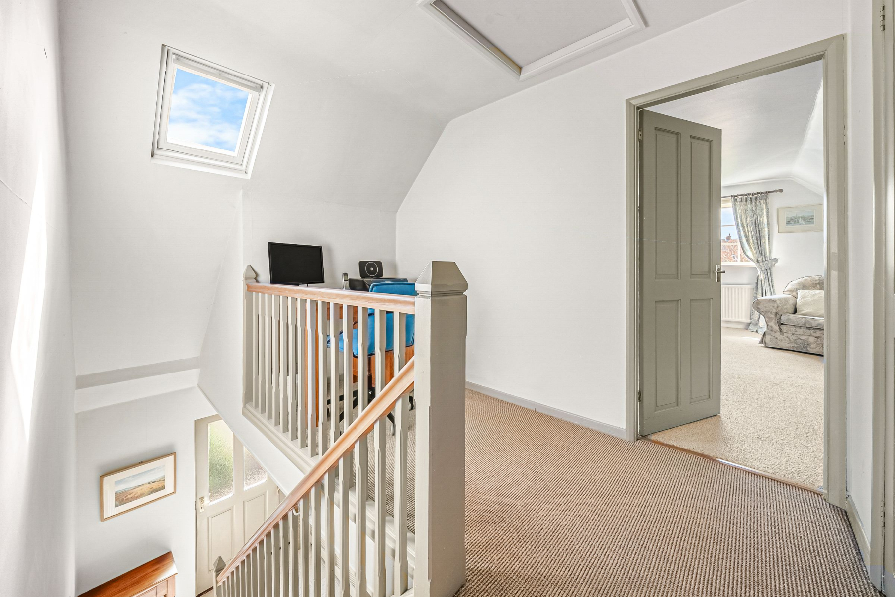 Upstairs, the property continues to perform, offering two further double bedrooms alongside a fully tiled family bathroom. A generous landing area creates additional space for home working or quiet retreat, reinforcing the home's versatility.