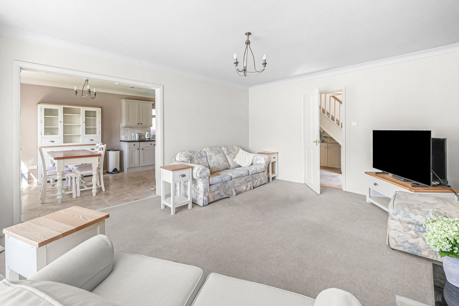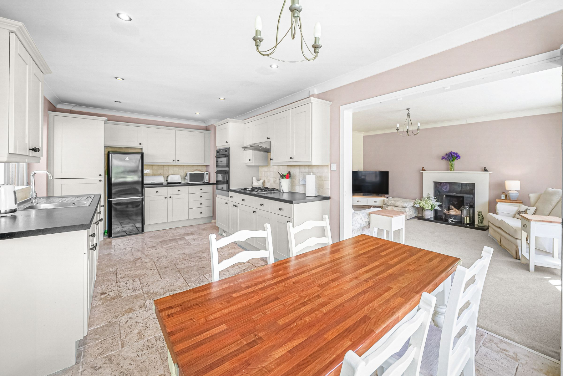 This immaculately presented home delivers both reassurance and flexibility, appealing to a broad buyer demographic seeking a peaceful yet well-connected setting. The ground floor is configured to maximise usability and flow, featuring a welcoming entrance hall, a contemporary open-plan dining kitchen, and a bright living room with feature fireplace-ideal for both everyday living and controlled entertaining. Two double bedrooms and a modern shower room at this level provide adaptable accommodation, suited to multi-generational living or enhanced accessibility.