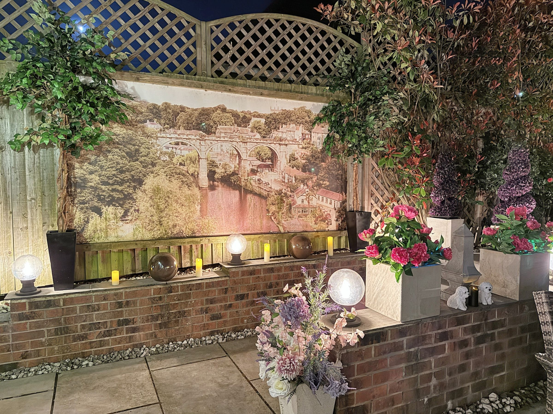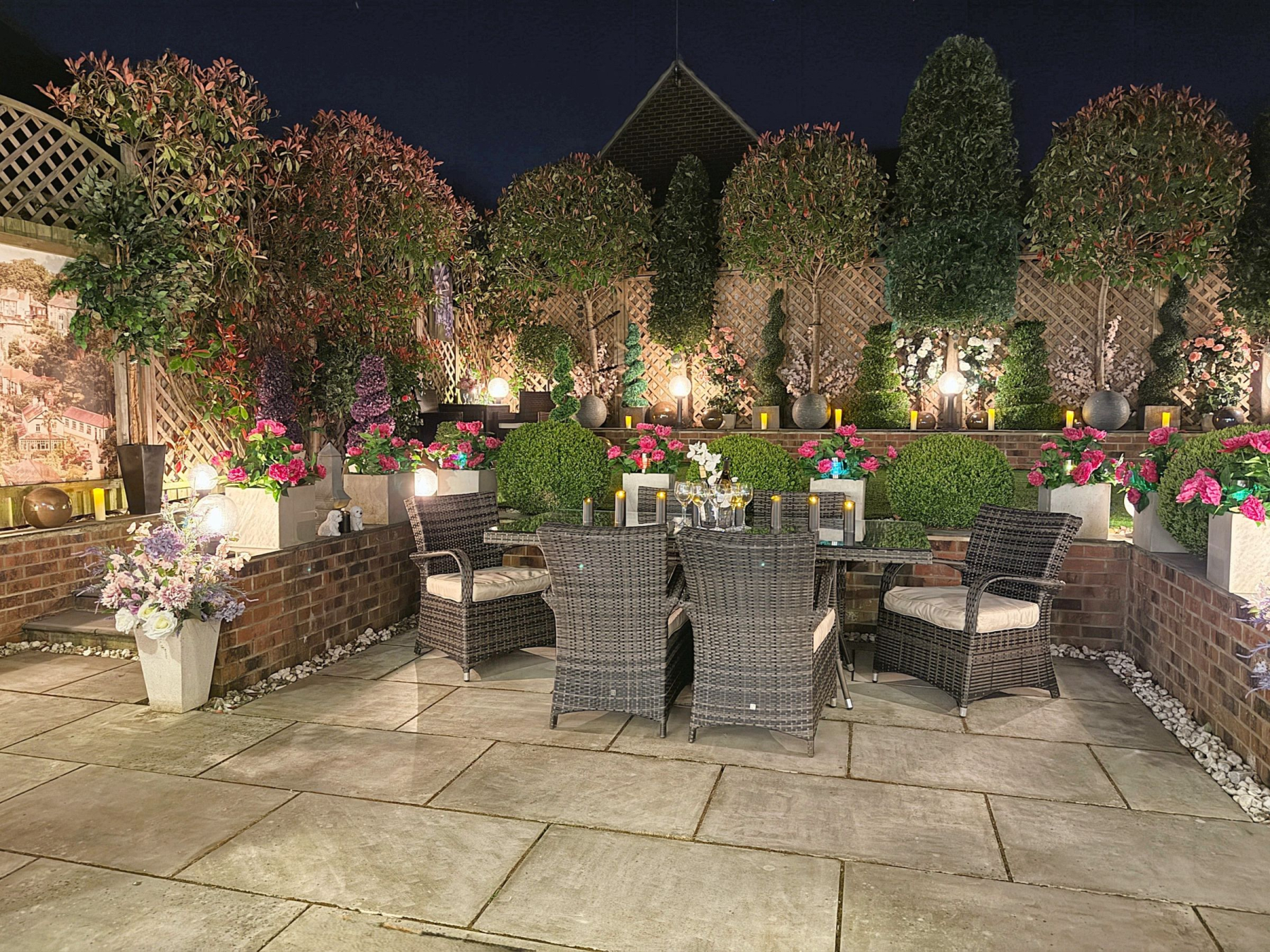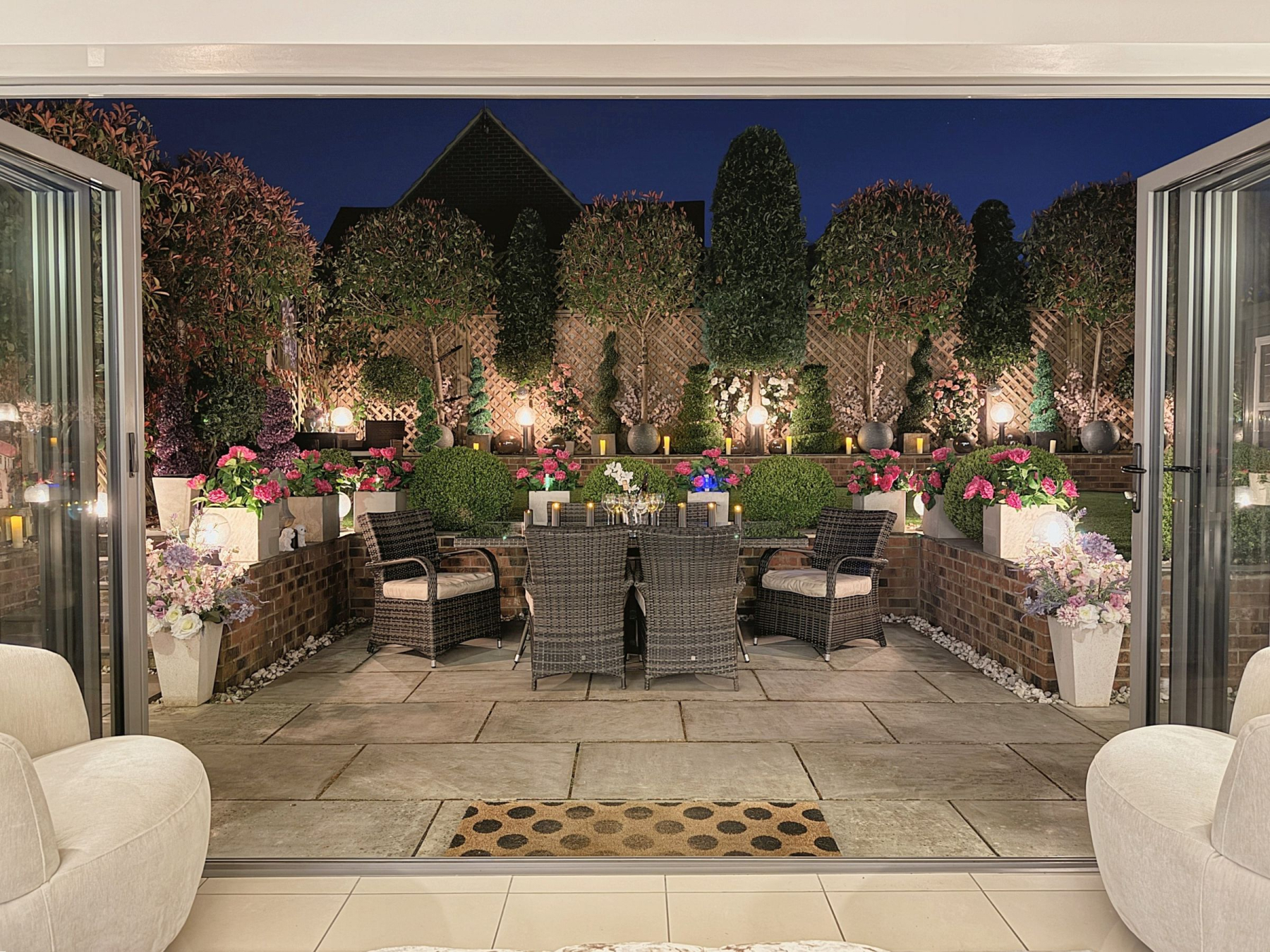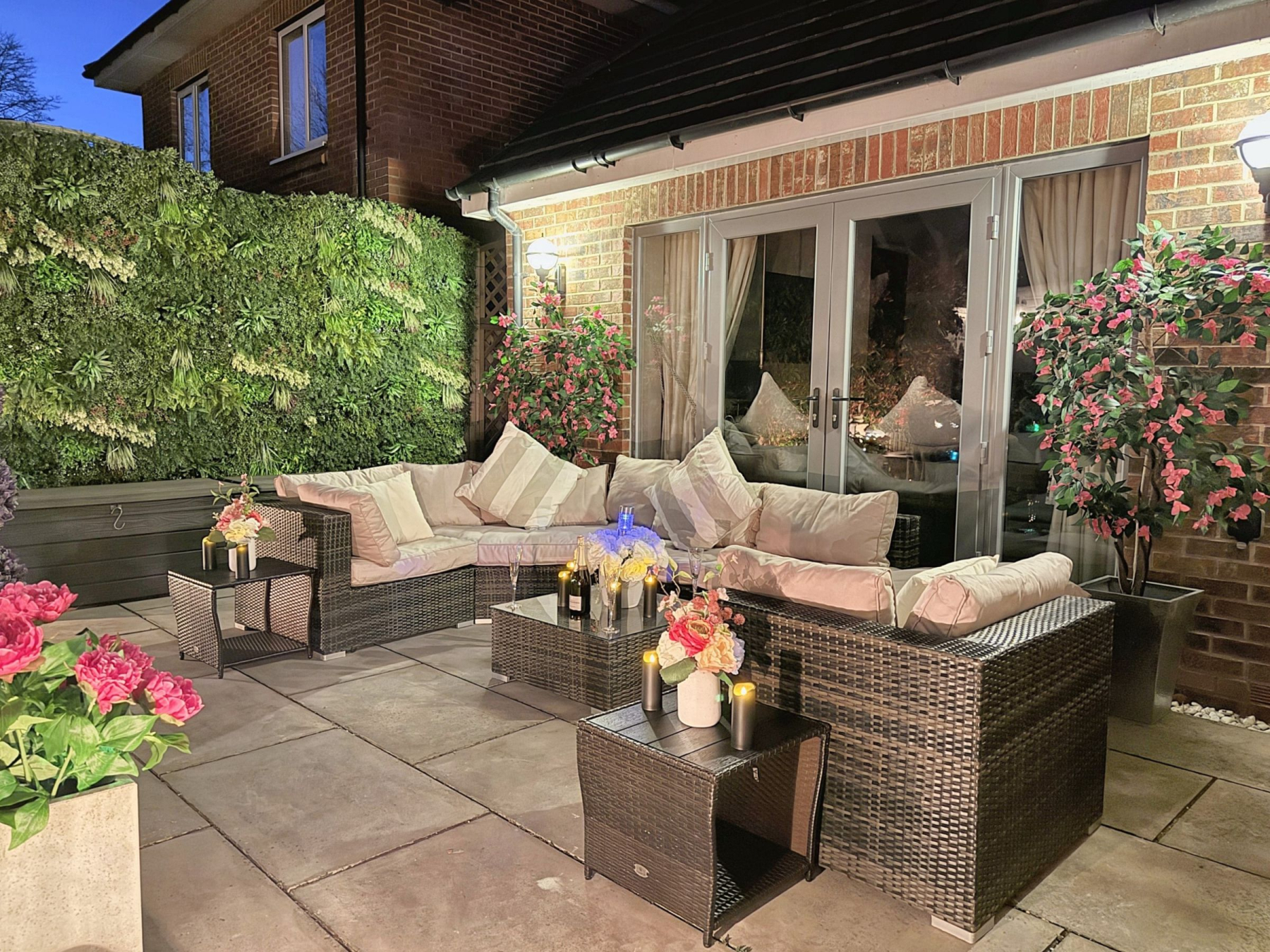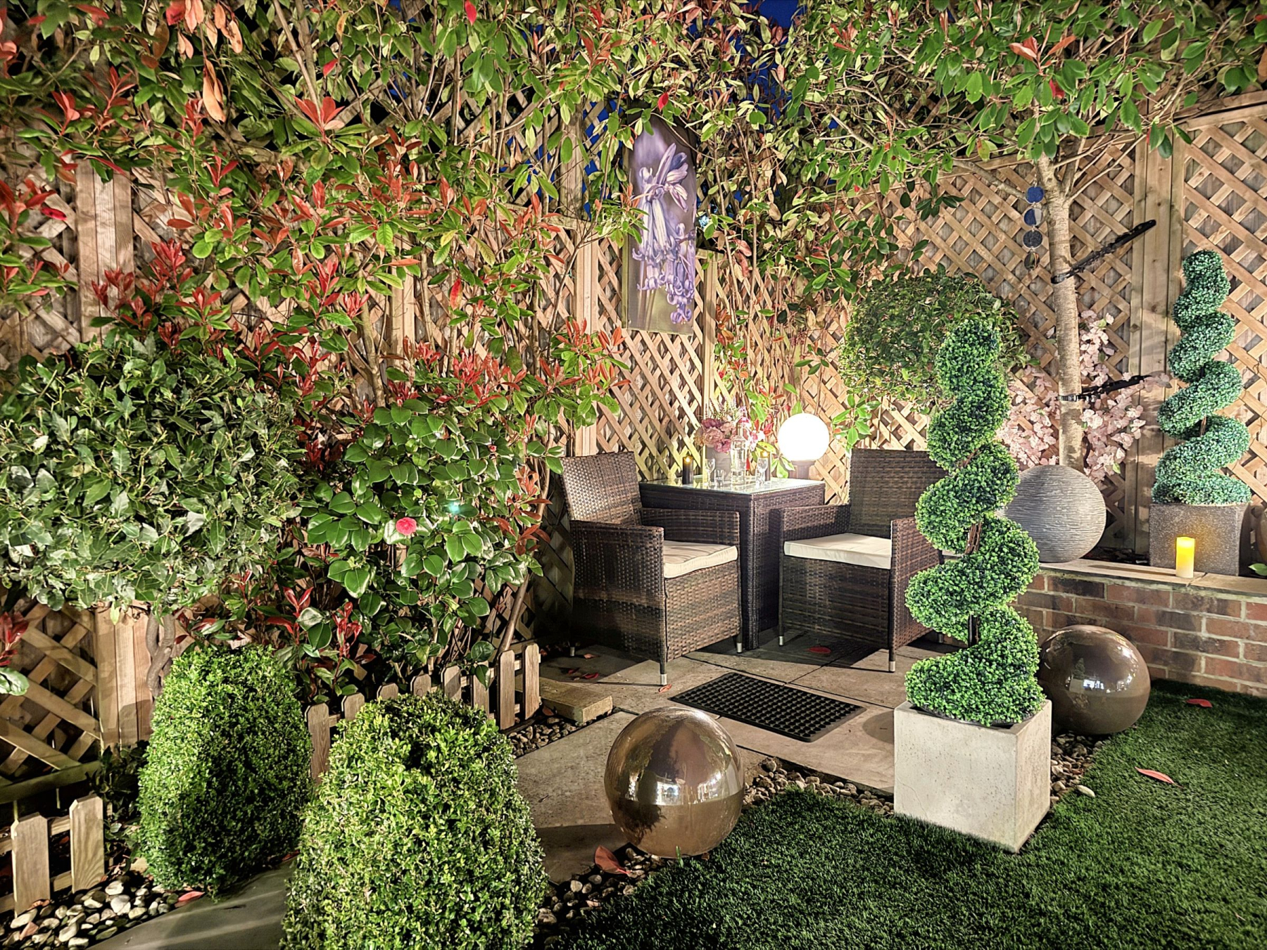 To the rear there is a private and enclosed south facing garden carefully landscaped to create a sense of intimacy, maximising the flow between inside and outside with astro turf lawn and multiple seating/entertaining areas including a summer house which has power.