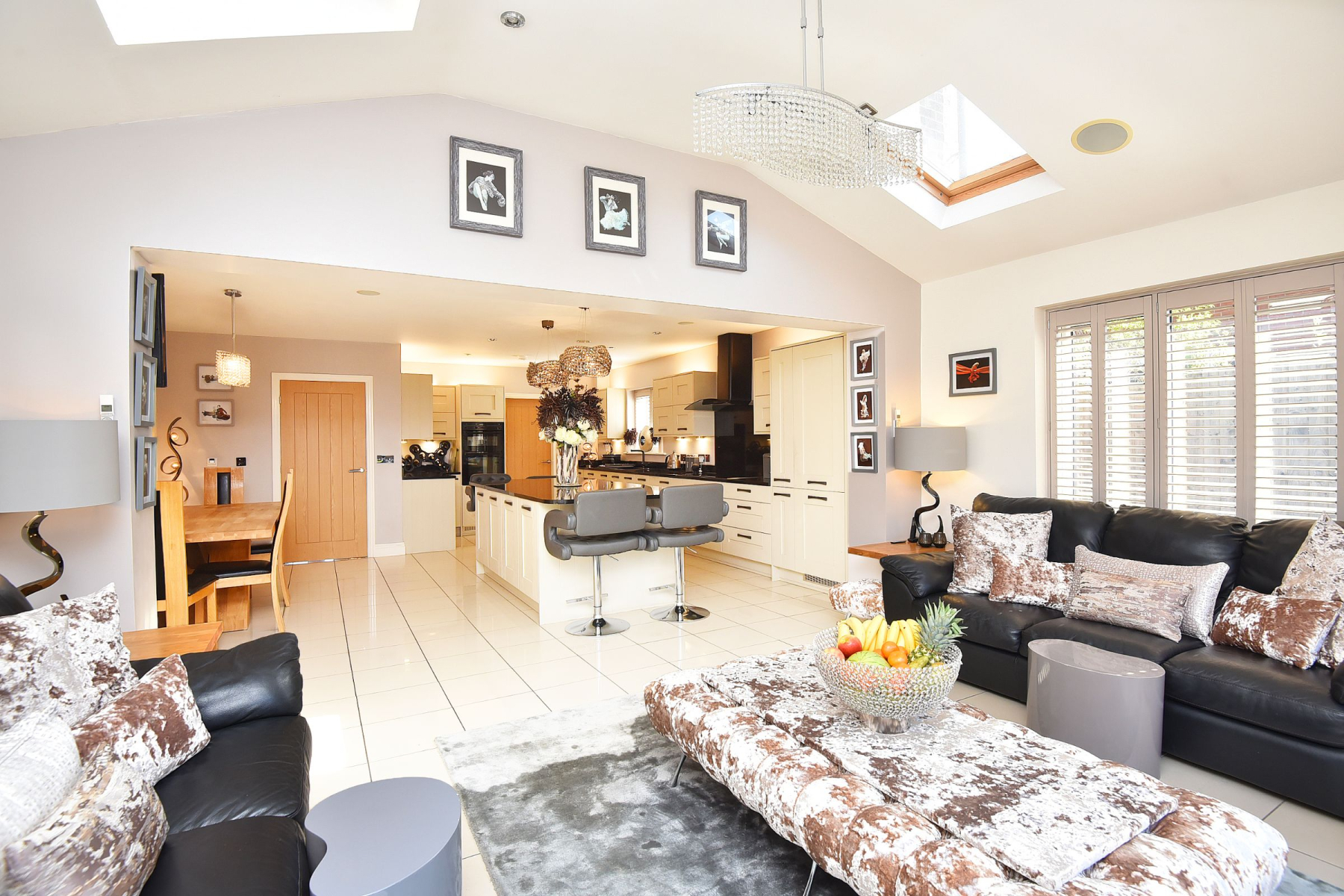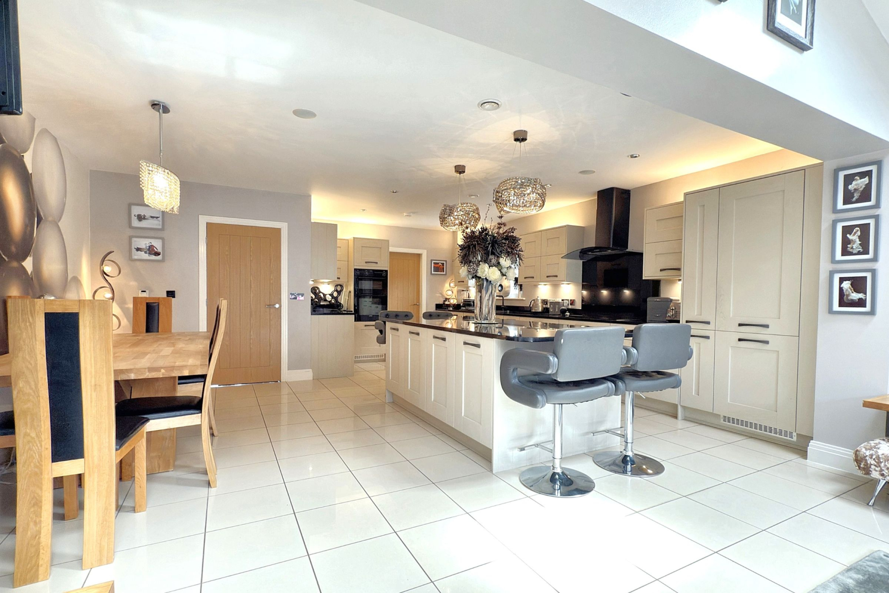 This exceptional family home reveals spacious and well planned accommodation comprising; entrance hall, snug/tv room, downstairs w/c, spacious lounge with feature fireplace and double doors leading out onto a patio area. The real hub of the house is the striking open plan living dining kitchen creating the perfect family / entertaining space with bi-folding doors out to a paved patio area creating the ultimate indoor outdoor living experience. The modern fitted kitchen has granite worktops, Siemens double oven, induction hob, integrated appliances including a microwave, Bosch dishwasher, fridge and freezer and there is a central island with a breakfast bar at both ends, a separate utility room with sink, plumbing and space for a washing machine and tumble dryer and a side access door leading outside. In the hallway there is a useful understairs storage cupboard and an integral door leading to the double garage (measuring 16'9 x 16) with light and power.