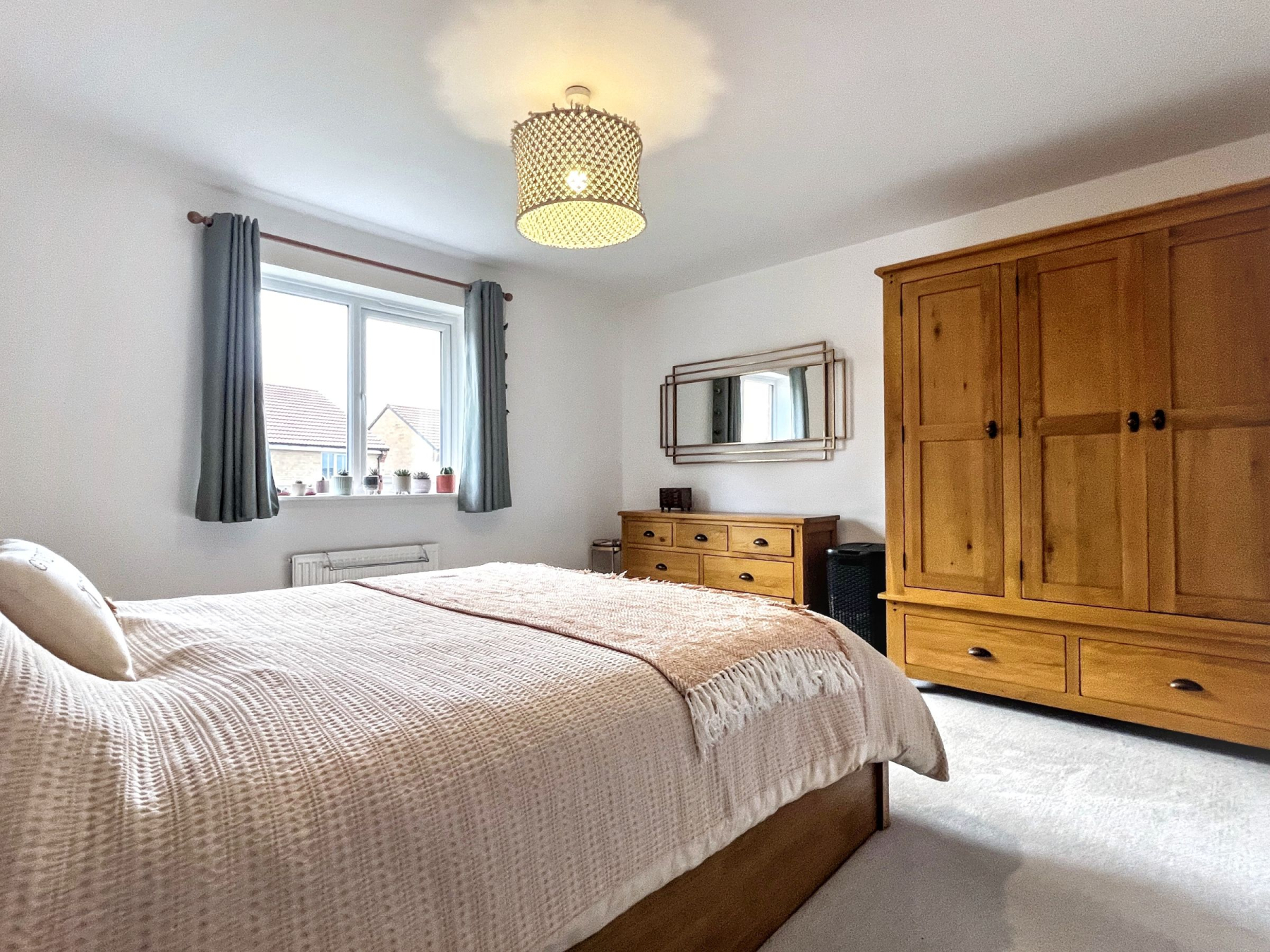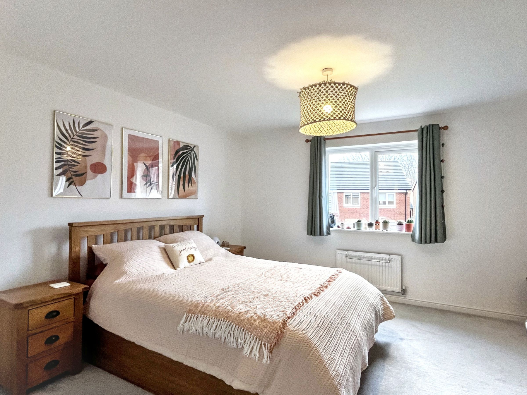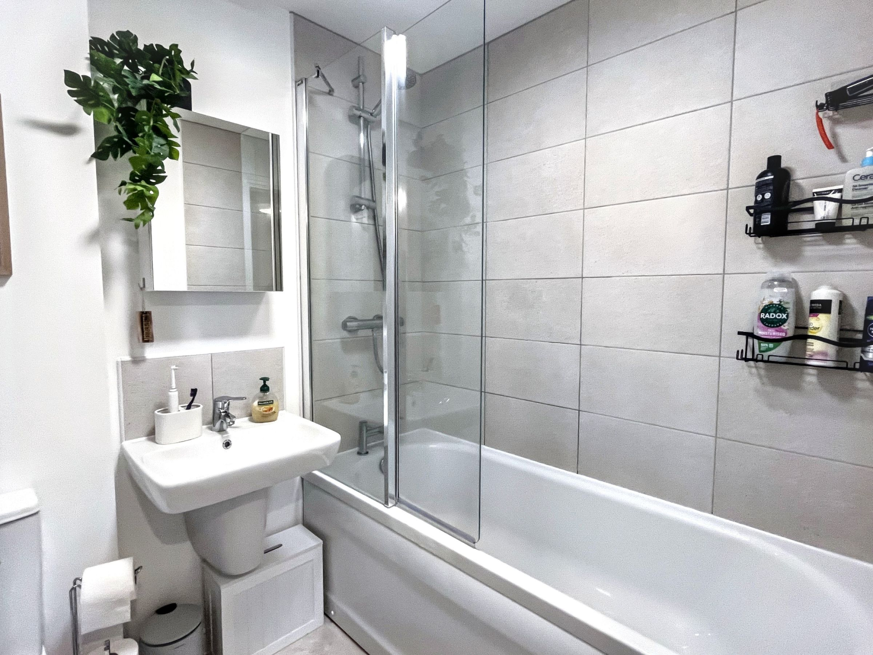 The first floor accommodates two full-size double bedrooms, supported by a modern house bathroom featuring a shower-over-bath configuration, low-flush toilet, and pedestal basin, ensuring a streamlined and family-friendly layout.