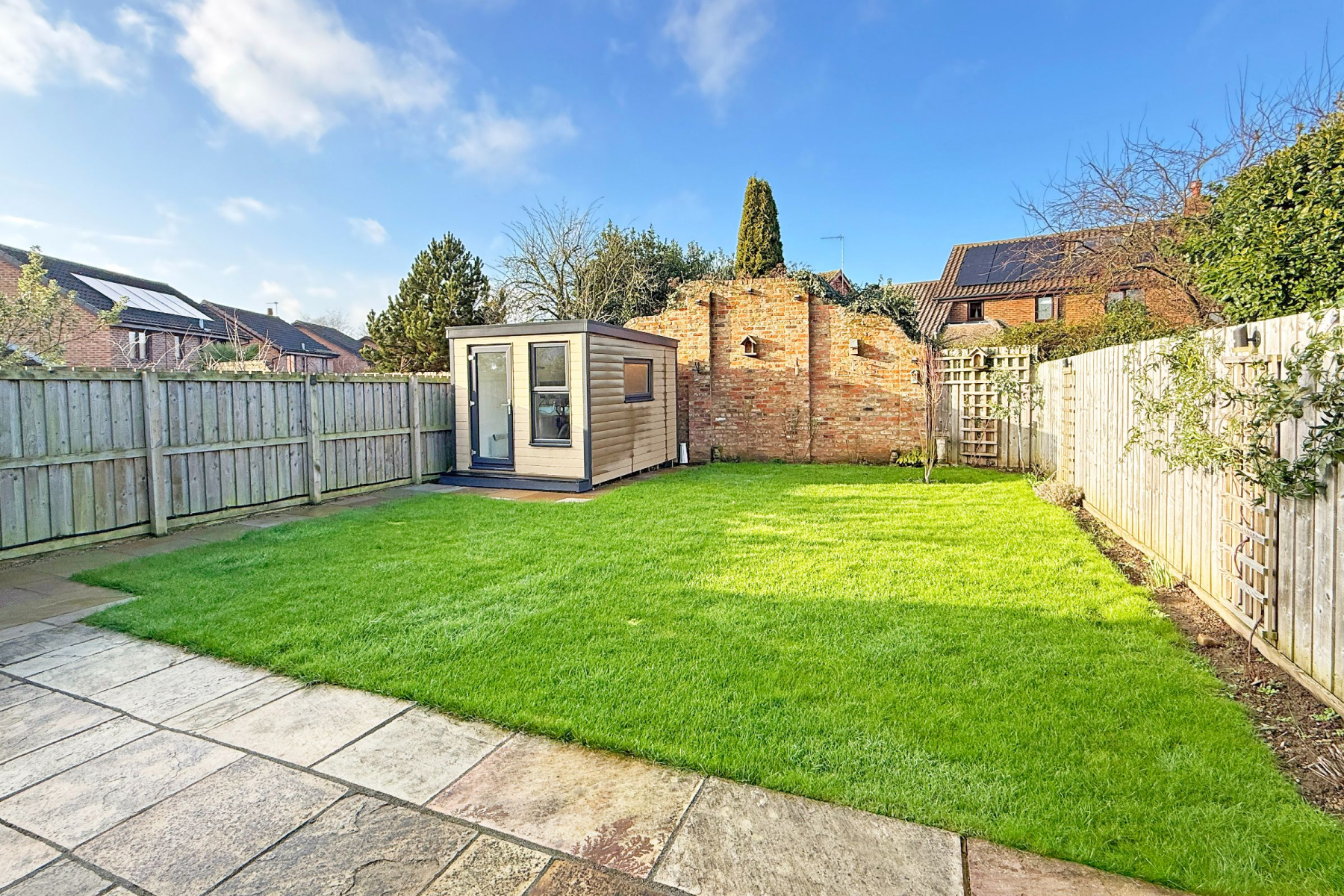 Externally, the home benefits from a private driveway, single garage, and immaculately maintained front and rear gardens. A newly installed garden office pod-complete with power and the ability to access high-speed internet connectivity - provides a flexible solution for remote working or additional lifestyle space.