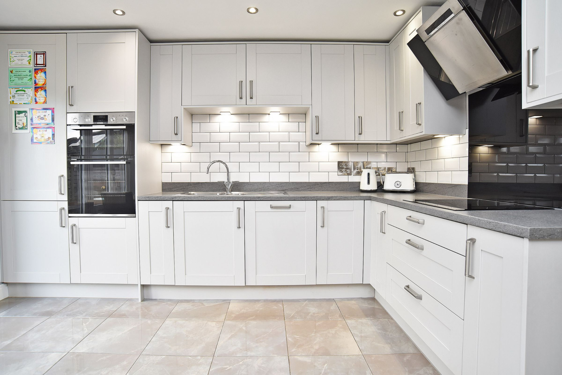 The first floor comprises three well-appointed bedrooms, including a principal suite with a private en-suite shower room, alongside a stylish family bathroom finished to a high standard.