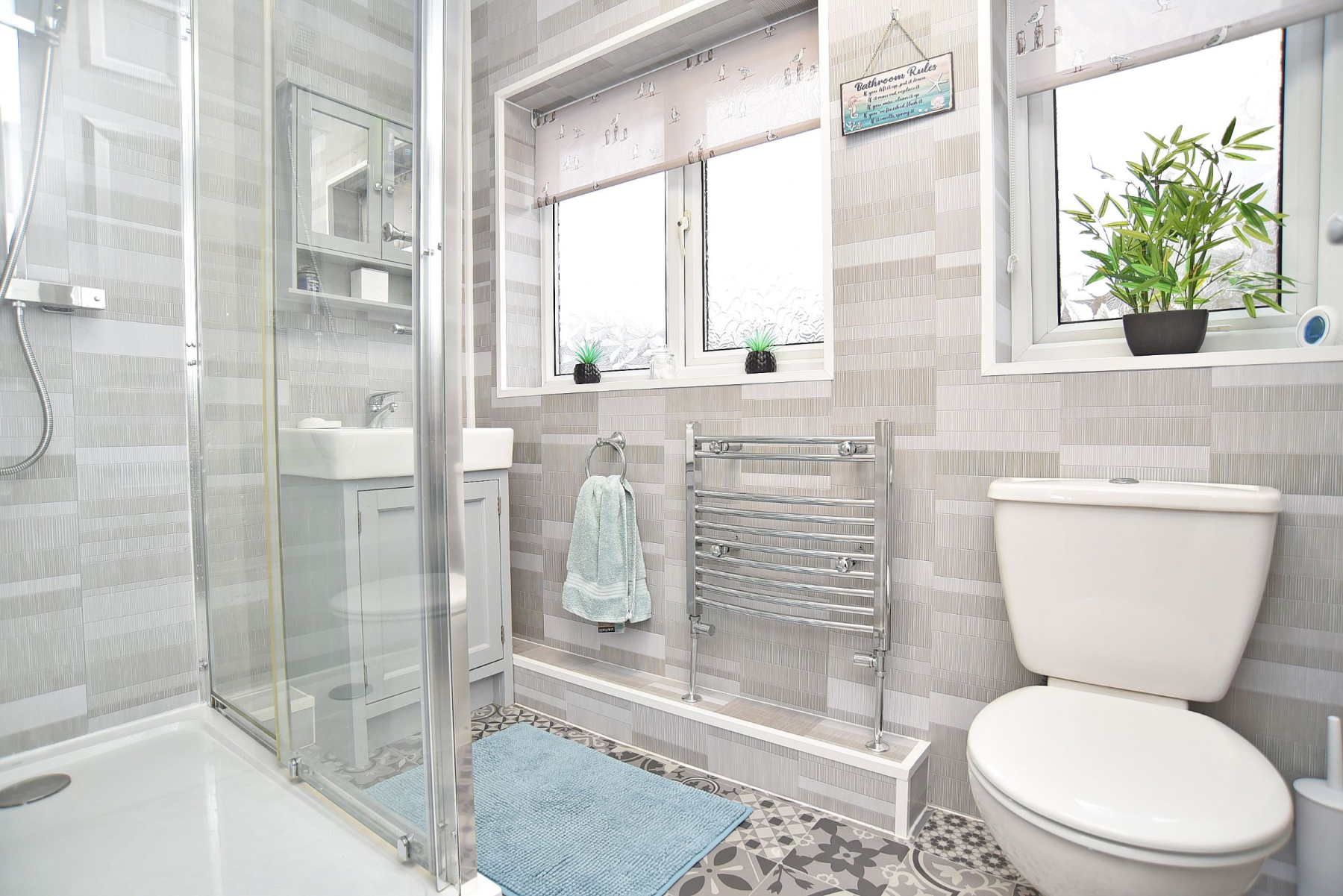 The beautifully presented Master bedroom benefits from extensive built-in storage and an ensuite shower room. Two further bedrooms also benefit from built-in wardrobes.