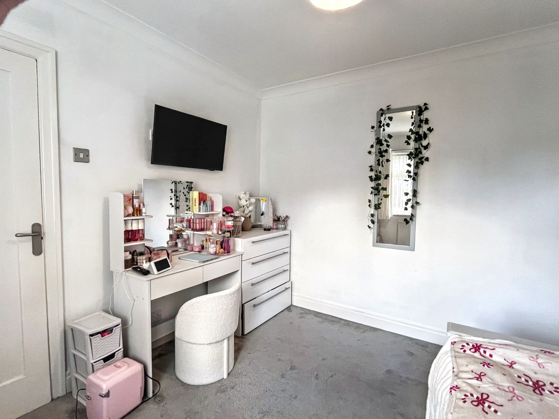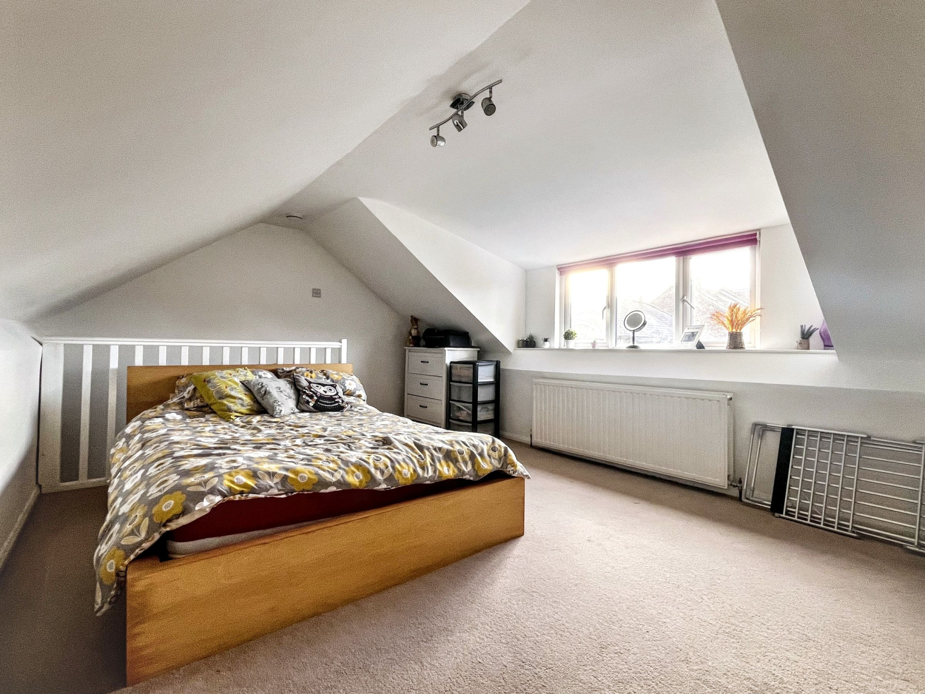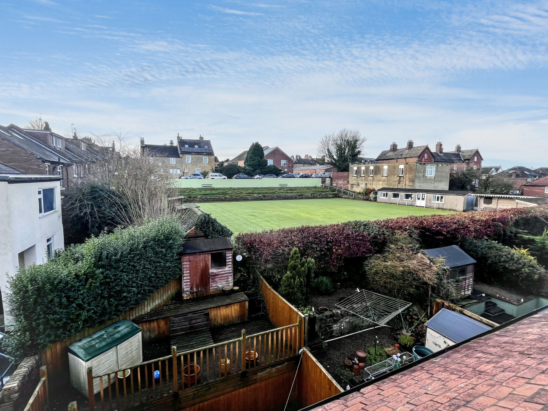 The ground floor is anchored by a generous kitchen-diner, forming the operational heart of the home, complemented by a well-proportioned lounge and practical understairs storage. The first floor provides two double bedrooms with built-in storage alongside the main house bathroom, creating a dedicated family zone. The second floor is exclusively occupied by an impressive principal bedroom, featuring a dormer window and open views across the bowling green-offering privacy, scale, and a clear sense of separation from the rest of the household.