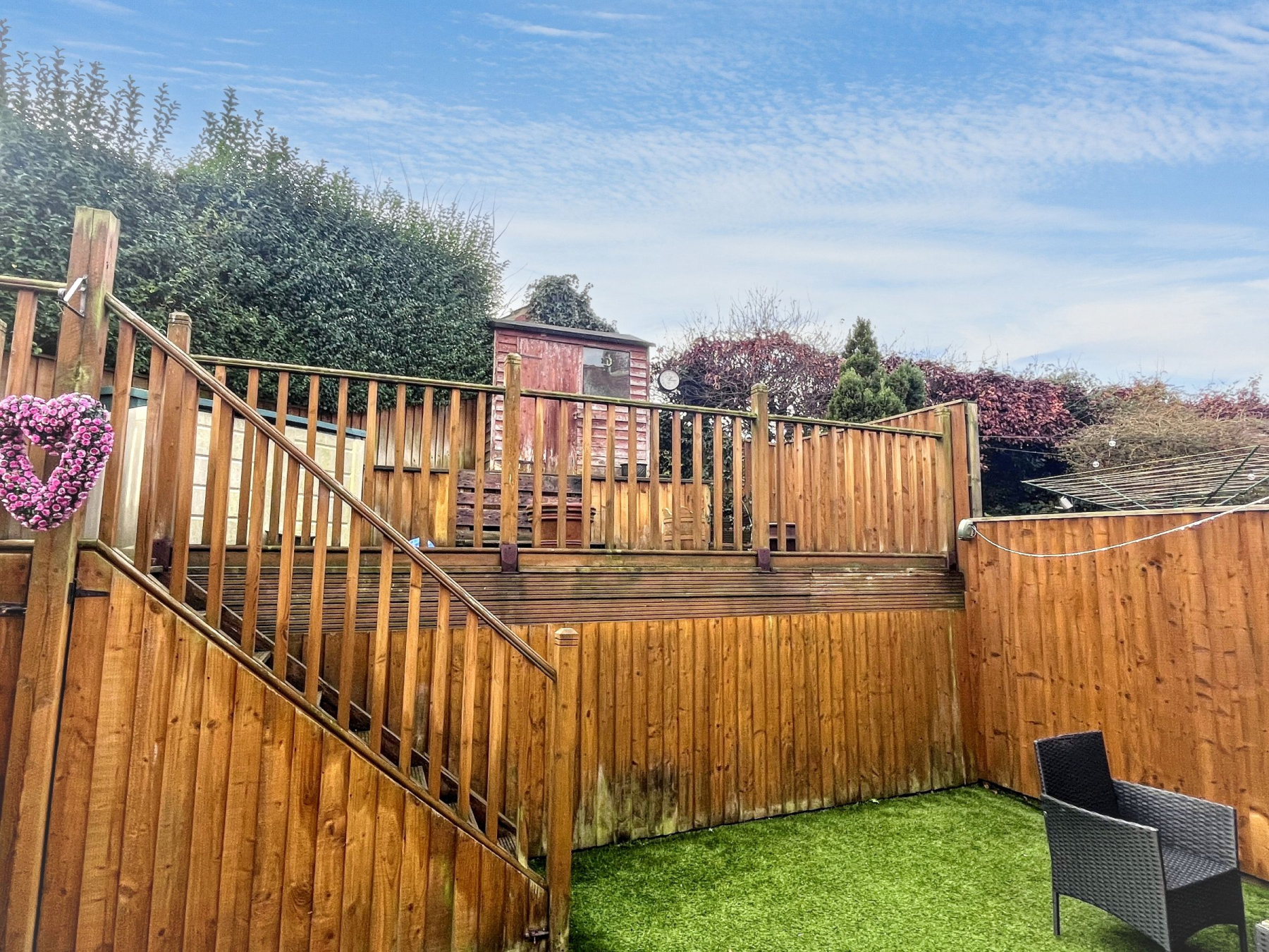 Externally, the private rear garden is accessed via a secure side passage and incorporates built-in storage within the elevated decked terrace, maximising usability without compromising space. To the front, off-street parking adds day-to-day convenience.