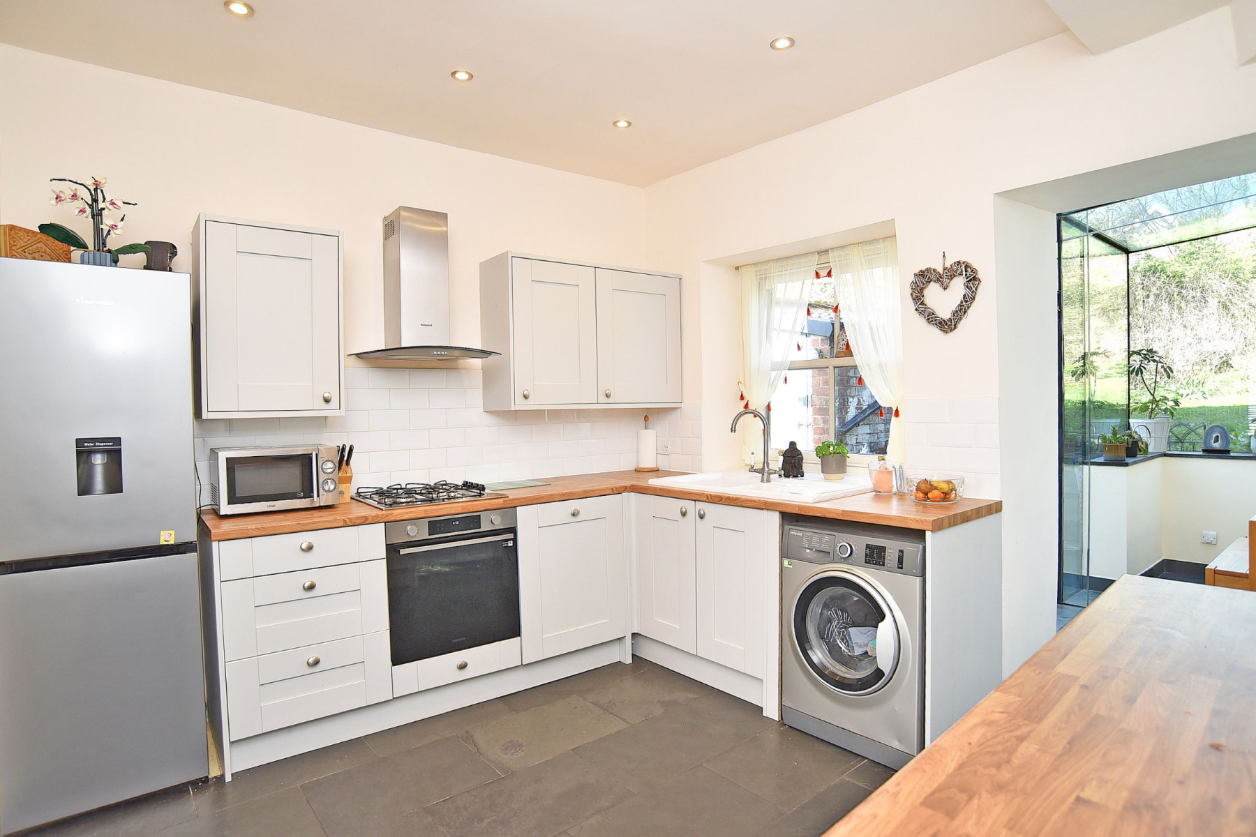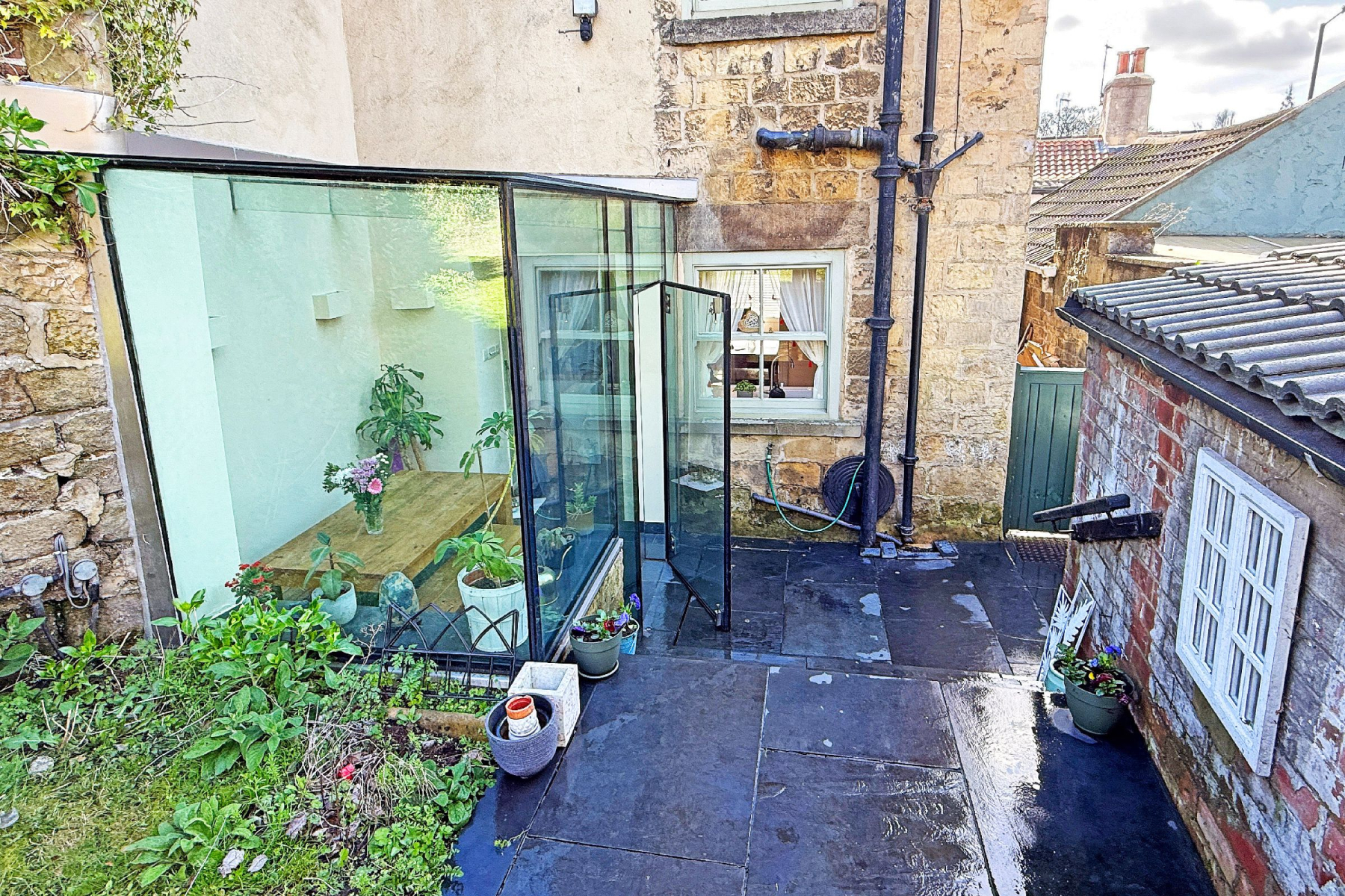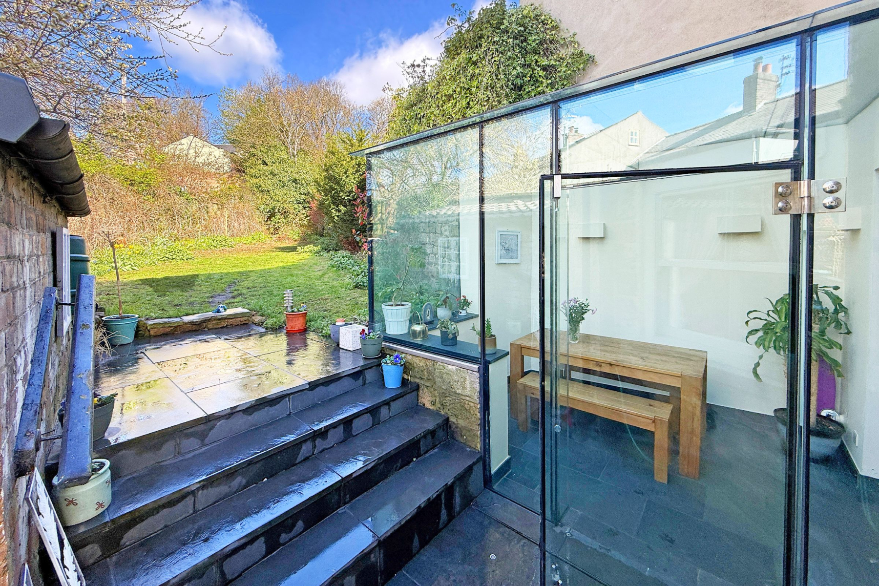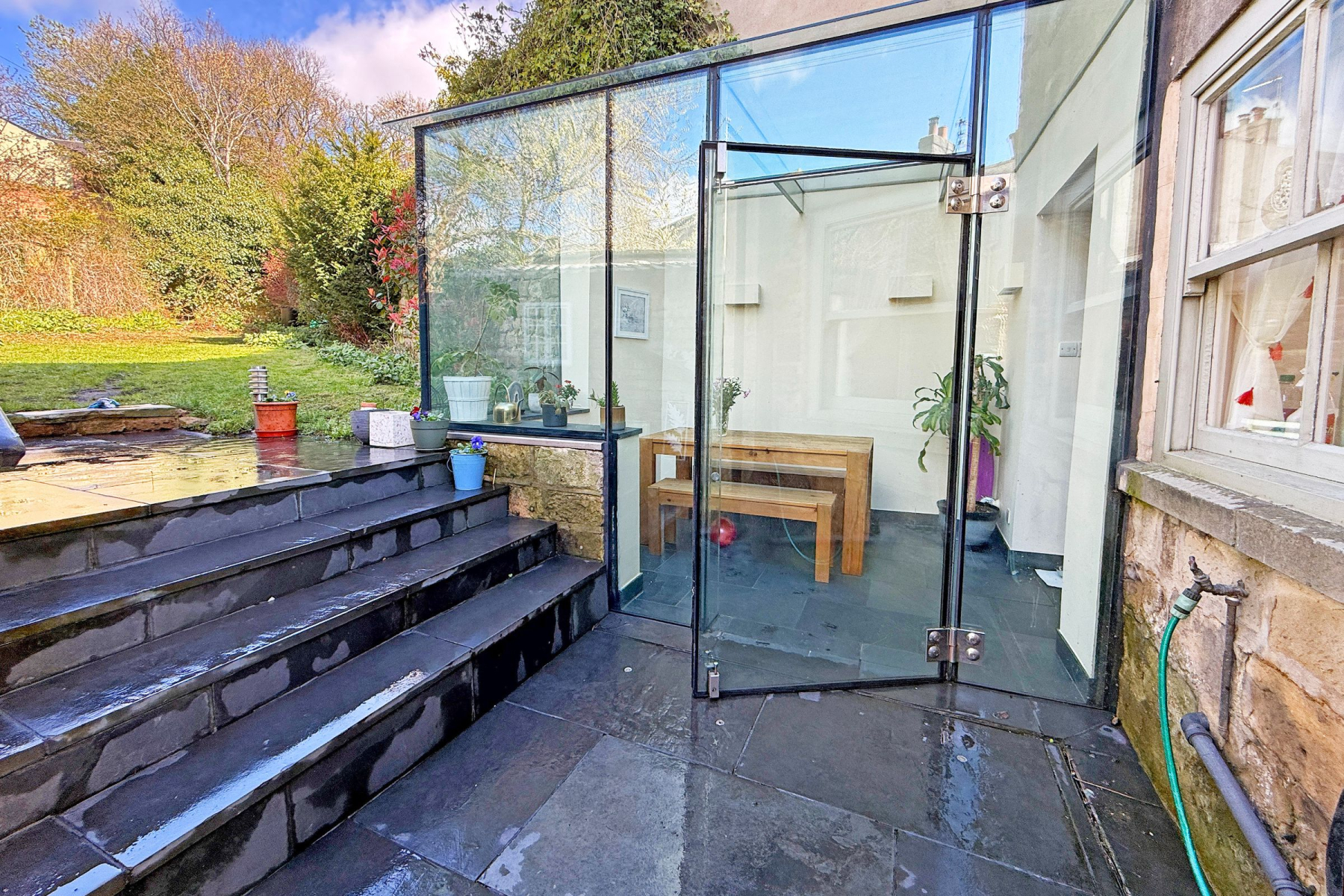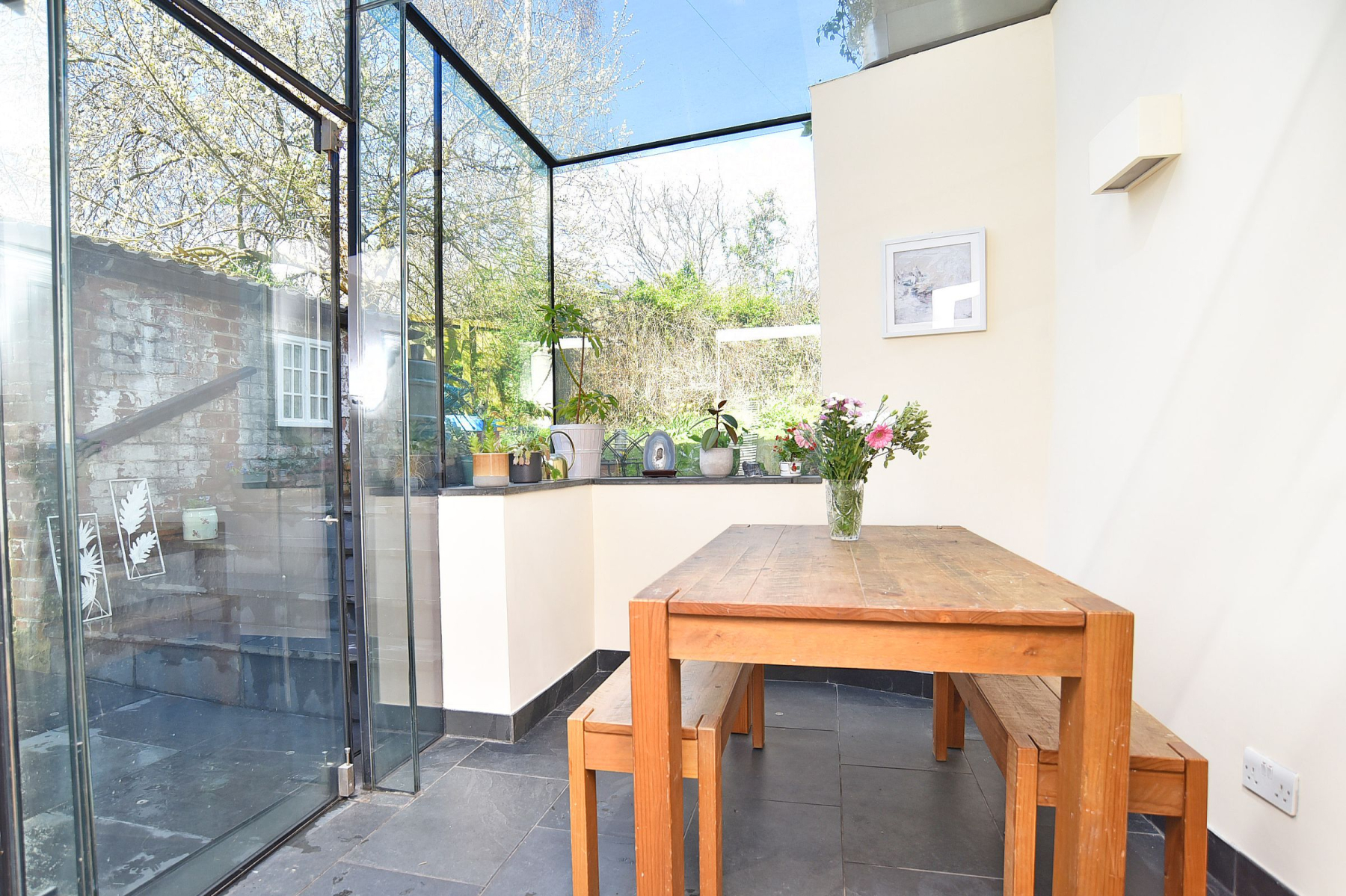 The accommodation comprises a welcoming hallway, living room, beautiful recently fitted kitchen, and a striking contemporary glass box extension, currently utilised as a dining/garden room-creating a seamless connection between internal living space and the rear garden.